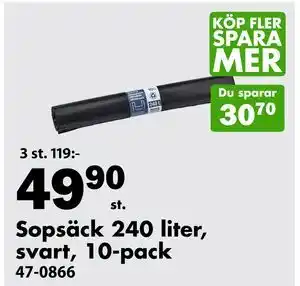 Sopsäck 240 liter, svart, 10-pack erbjudande hos Biltema