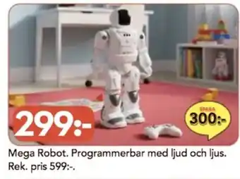 Denna kampanj är tillgänglig i olika butiker, se alla produkter för att få det billigaste Mega Robot. Programmerbar med ljud och ljus. Om du vill ta reda på om denna produkt har en bättre rabatt i en annan butik, kolla kategorin 'Matbutiker'. Du kanske också tycker att dessa erbjudanden är intressanta: Mega Robot, SEK 299, Bubbelmaskin med ljus och ljud & Bilbana white shark med ljud och ljus.