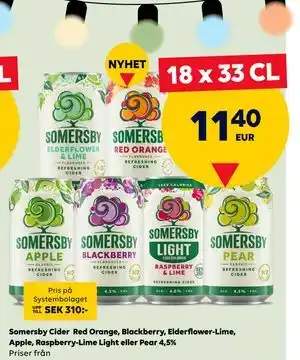 Somersby Cider Red Orange, Blackberry, Elderflower-Lime, Apple, Raspberry-Lime Light eller Pear 4,5% 18 x 33 cl