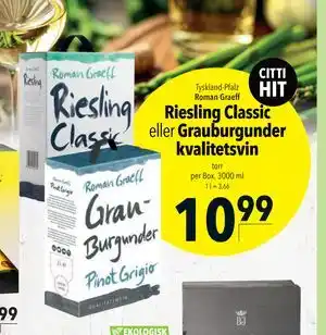 Nu på erbjudande hos Citti: Riesling Classic eller Grauburgunder kvalitetsvin, EUR 10.99 ✅ Giltigt från 13-04 till 21-06.