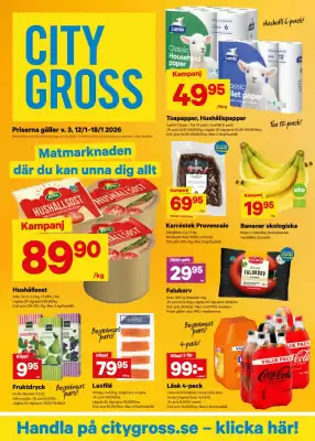 Varje vecka publiceras ett nytt reklamblad från Matbutiker hos City Gross. På den här sidan hittar du alltid det senaste <b>City Gross reklamblad</b> som gäller från 12-01-2026 till 19-01-2026. Du får snabbt överblick över det lokala reklambladet i %city% och vet när nästa finns tillgängligt.