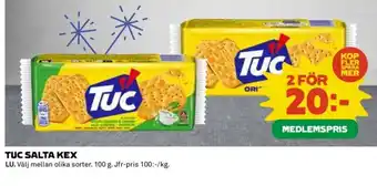 Denna kampanj är tillgänglig i olika butiker, se alla produkter för att få det billigaste Tuc Salta kex. Om du vill ta reda på om denna produkt har en bättre rabatt i en annan butik, kolla kategorin 'Matbutiker'. Du kanske också tycker att dessa erbjudanden är intressanta: TUC salta kex, Medlemspris, TUC KEX & TUC KEX.