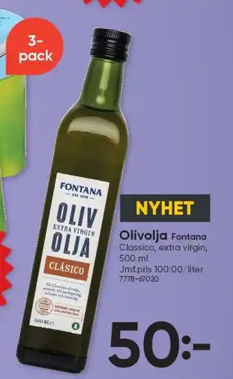 Denna kampanj är tillgänglig i olika butiker, se alla produkter för att få det billigaste Olivolja Fontana Classico. Om du vill ta reda på om denna produkt har en bättre rabatt i en annan butik, kolla kategorin 'Matbutiker'. Du kanske också tycker att dessa erbjudanden är intressanta: FONTANA Olivolja, Garant Olivolja Classico & Fontana Olivolja One.