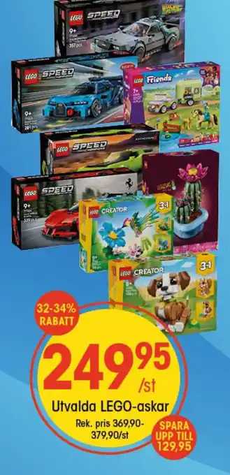 Denna kampanj är tillgänglig i olika butiker, se alla produkter för att få det billigaste Utvalda lego-askar. Om du vill ta reda på om denna produkt har en bättre rabatt i en annan butik, kolla kategorin 'Matbutiker'. Du kanske också tycker att dessa erbjudanden är intressanta: Utvalda LEGO-askar, Utvalda barnkläder & Utvalda ljusslingor.