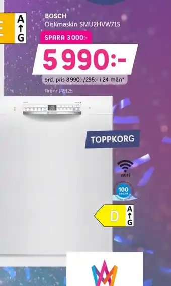 Nu på erbjudande hos Elon: BOSCH Diskmaskin SMU2HVW71S ✅ Giltigt från 26-01 till 15-02.
