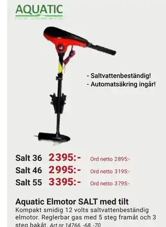 Aquatic Elmotor SALT med tilt erbjudanden och online deals från det nuvarande Erlandsons Brygga