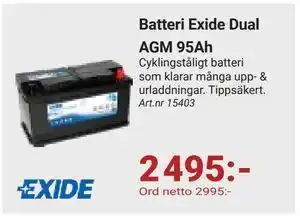 Batteri Exide Dual AGM 95Ah erbjudande hos Erlandsons Brygga