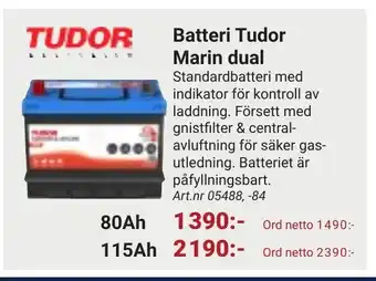 Batteri Tudor Marin dual erbjudanden och online deals från det nuvarande Erlandsons Brygga