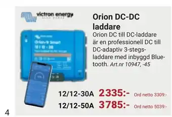 Orion DC till DC-laddare är en professionell DC till DC-adaptiv 3-stegs- laddare med inbyggd Blue- tooth. Art.nr 10947, -45