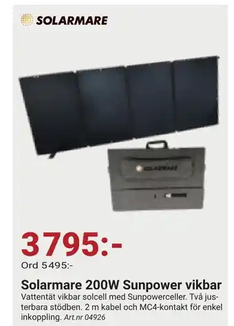 Solarmare 200W Sunpower vikbar erbjudanden och online deals från det nuvarande Erlandsons Brygga