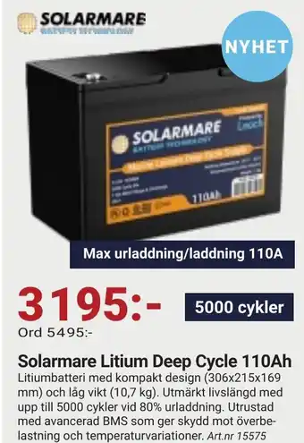 Solarmare litium deep cycle 110ah erbjudanden och online deals från det nuvarande Erlandsons Brygga