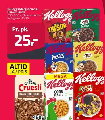 Kelloggs morgenmad el. quaker crüsli 330 - 500 g