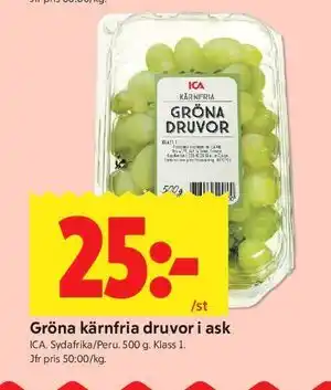 Gröna kärnfria druvor i ask erbjudanden och onlineerbjudanden från ICA Kvantum