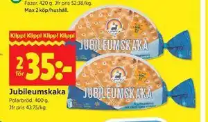 Denna kampanj är tillgänglig i olika butiker, se alla produkter för att få det billigaste Jubileumskaka. Om du vill ta reda på om denna produkt har en bättre rabatt i en annan butik, kolla kategorin 'Matbutiker'. Du kanske också tycker att dessa erbjudanden är intressanta: Polarbröd Jubileumskaka, Polarbröd Jubileumskaka & erbjuda 3.