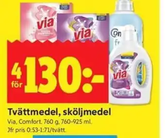 Via, Comfort Tvättmedel, sköljmedel 760 g, 760-925 ml.
