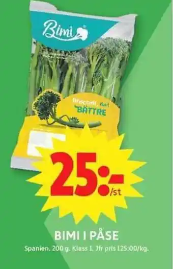Denna kampanj är tillgänglig i olika butiker, se alla produkter för att få det billigaste Bimi i påse. Om du vill ta reda på om denna produkt har en bättre rabatt i en annan butik, kolla kategorin 'Matbutiker'. Du kanske också tycker att dessa erbjudanden är intressanta: Potatis i påse, Delikatesspotatis i påse & Delikatesspotatis i påse.