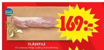 Du hittar priset för Fläskfilé längst upp på sidan, tillsammans med de datum då erbjudandet är aktuellt. Du kan också kontrollera priset i det aktuella ICA Maxi reklamblad eller på ICA Maxi hemsida. Kampanjerbjudanden ser till så du kan köpa ICA Maxi-produkter till lägsta pris.