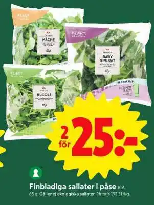 Finbladiga sallater i påse Rabatt hos ICA Supermarket