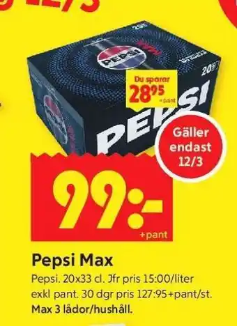 Nu på erbjudande hos ICA Supermarket: Pepsi Max ✅ Giltigt från 9-03 till 15-03.