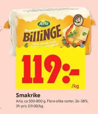 Denna kampanj är tillgänglig i olika butiker, se alla produkter för att få det billigaste SMAKRIKE. Om du vill ta reda på om denna produkt har en bättre rabatt i en annan butik, kolla kategorin 'Matbutiker'. Du kanske också tycker att dessa erbjudanden är intressanta: Smakrike, Arla Smakrike & erbjuda 3.