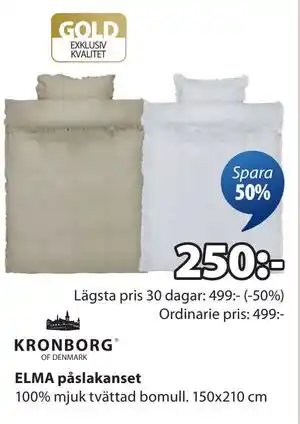 Detta ELMA påslakanset-erbjudande är nu tillgängligt hos JYSK. All information om aktuellt pris, kampanjvillkor och giltighetstider finns på denna sida. Titta också på andra jämförbara erbjudanden och kampanj som är relaterade till ELMA påslakanset, så att du alltid kan göra det mest fördelaktiga valet.