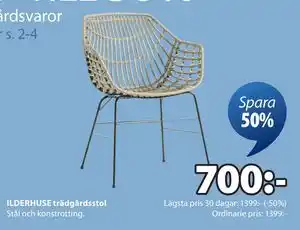 Kolla efter den billigaste produkten bland alla kampanjer! Om du vill veta om JYSK har den högsta rabatten för ILDERHUSE trädgårdsstol, jämför det på ämnessidan eller med andra butiker.
