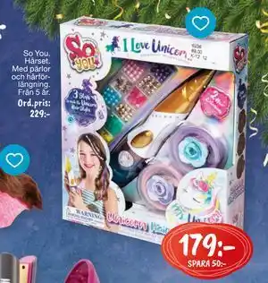 Leklust erbjuder ett brett utbud av produkter, förutom So You. Hårset., SEK 179. Håll ett öga på veckans aktuella Leklust reklamblad för att hitta de bästa erbjudandena och kampanjerna. Förutom So You. Hårset., SEK 179 kan du också hitta följande erbjudanden: So you Deluxe Loome, SEK 299, So Beads Pärlset, SEK 249 & So Bomb. Handspa 3-i-1., SEK 199.