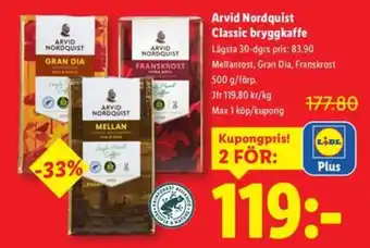 ARVID NORDQUIST Classic bryggkaffe Rabatt hos Lidl