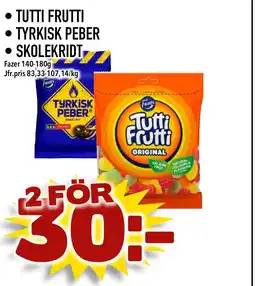 FAZER Tutti frutti • Tyrkisk peber • Skolekridt