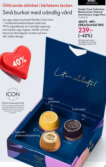 Du hittar priset för Tender Care Collection Blackcurrant längst upp på sidan, tillsammans med de datum då erbjudandet är aktuellt. Du kan också kontrollera priset i det aktuella Oriflame reklamblad eller på Oriflame hemsida. Kampanjerbjudanden ser till så du kan köpa Oriflame-produkter till lägsta pris.