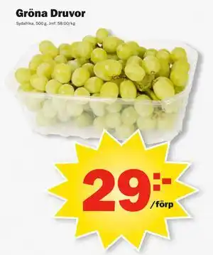 Detta Gröna Druvor-erbjudande är nu tillgängligt hos Pekås. All information om aktuellt pris, kampanjvillkor och giltighetstider finns på denna sida. Titta också på andra jämförbara erbjudanden och kampanj som är relaterade till Gröna Druvor, så att du alltid kan göra det mest fördelaktiga valet.