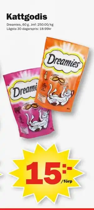 Denna kampanj är tillgänglig i olika butiker, se alla produkter för att få det billigaste Kattgodis. Om du vill ta reda på om denna produkt har en bättre rabatt i en annan butik, kolla kategorin 'Matbutiker'. Du kanske också tycker att dessa erbjudanden är intressanta: Kattgodis Partymix, DREAMIES KATTGODIS & Dreamies Kattgodis.