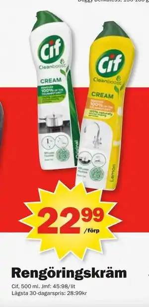 Detta Rengöringskräm-erbjudande är nu tillgängligt hos Pekås. All information om aktuellt pris, kampanjvillkor och giltighetstider finns på denna sida. Titta också på andra jämförbara erbjudanden och kampanj som är relaterade till Rengöringskräm, så att du alltid kan göra det mest fördelaktiga valet.