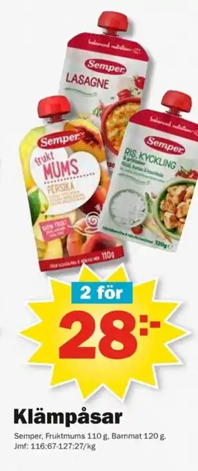 Du hittar priset för Semper Klämpåsar längst upp på sidan, tillsammans med de datum då erbjudandet är aktuellt. Du kan också kontrollera priset i det aktuella Pekås reklamblad eller på Pekås hemsida. Kampanjerbjudanden ser till så du kan köpa Pekås-produkter till lägsta pris.