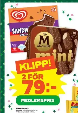 Du hittar priset för Glass flerpack, Medlemspris längst upp på sidan, tillsammans med de datum då erbjudandet är aktuellt. Du kan också kontrollera priset i det aktuella Stora Coop reklamblad eller på Stora Coop hemsida. Kampanjerbjudanden ser till så du kan köpa Stora Coop-produkter till lägsta pris.