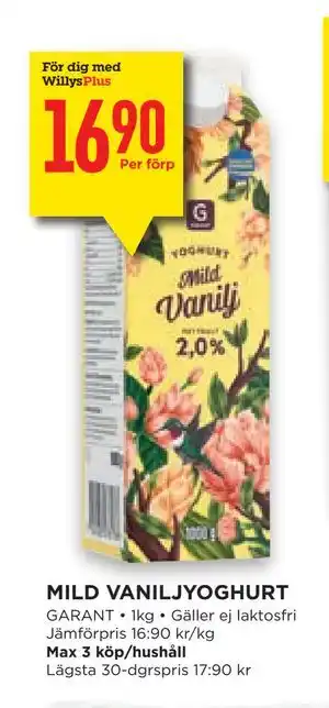 MILD VANILJYOGHURT, Medlemspris erbjudande hos Willys Hemma