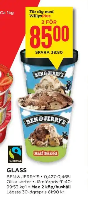 Du hittar priset för GLASS, Medlemspris längst upp på sidan, tillsammans med de datum då erbjudandet är aktuellt. Du kan också kontrollera priset i det aktuella Willys reklamblad eller på Willys hemsida. Kampanjerbjudanden ser till så du kan köpa Willys-produkter till lägsta pris.