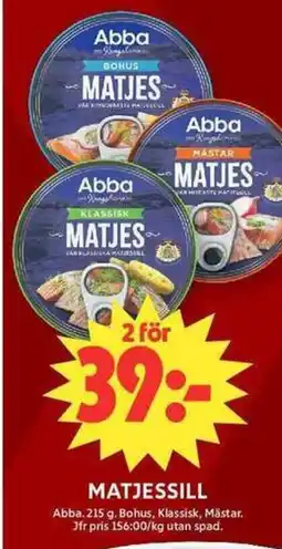 | Abba Matjessill 215 g | ICA Maxi | 55,00 kr | 3 for 55 | 16 juni 2025 | 22 juni 2025 | ||
