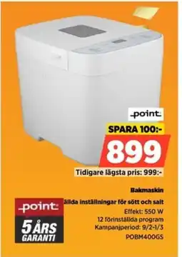 Power Point bakmaskin point: allda inställningar för sött och salt erbjudaPoint bakmaskin point: allda inställningar för sött och saltPower999,00 kr899,00 kr100,00 kr Rabatt27 november 202502 december 2025