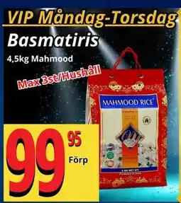 Matrix Butikerna Mahmood Basmatiris erbjudaMahmood Basmatiris 4.5 kgMatrix Butikerna149,95 kr109,95 kr40,00 kr Rabatt09 februari 202615 februari 2026