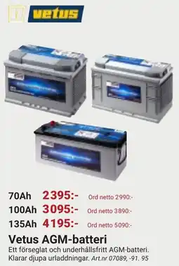 Erlandsons Brygga Vetus AGM-batteri erbjuda