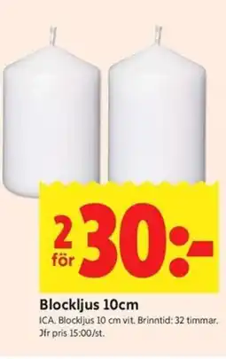 | Blockljus vit 10cm. | ICA Kvantum | 30,00 kr | 2 for | 27 oktober 2025 | 02 november 2025 | ||