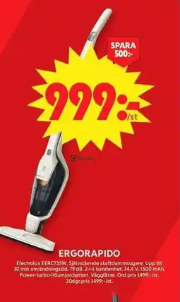 | ELECTROLUX Ergorapido | ICA Maxi | 1 499,00 kr | 999,00 kr | 500,00 kr Rabatt | 22 april 2025 | 27 april 2025 | |