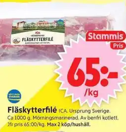 | FLÄSKYTTERFILÉ | ICA Supermarket | 65,00 kr | 27 april 2026 | 03 maj 2026 | |||