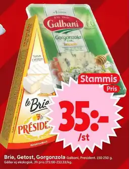 | GALBANI, PRESIDENT Brie, Getost, Gorgonzola 150-200 g | ICA Supermarket | 35,00 kr | 16 juni 2025 | 22 juni 2025 | |||