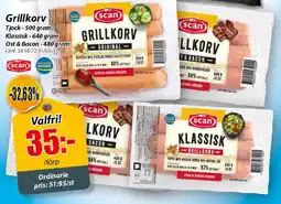 ICA Maxi Scan Grillkorv erbjudaScan Grillkorv 900-960 gICA Maxi57,90 kr26 januari 202601 februari 2026