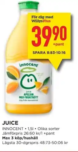 Willys Juice Innocent erbjudaJuice InnocentWillys31,04 kr16 mars 202622 mars 2026