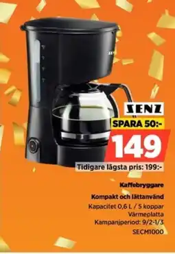| SENZ Kaffebryggare SECM1000 | Power | 199,00 kr | 149,00 kr | 50,00 kr Rabatt | 09 februari 2026 | 15 februari 2026 | |