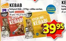 | SCHYSST KÄK Kebab 275 g | Matvärlden Tensta | 39,95 kr | 23 februari 2026 | 01 mars 2026 | |||