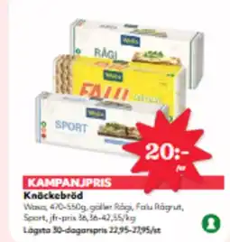 | Wasa Knäckebröd 470 g-550 g | Hemköp | 20,00 kr | 18 augusti 2025 | 24 augusti 2025 | |||